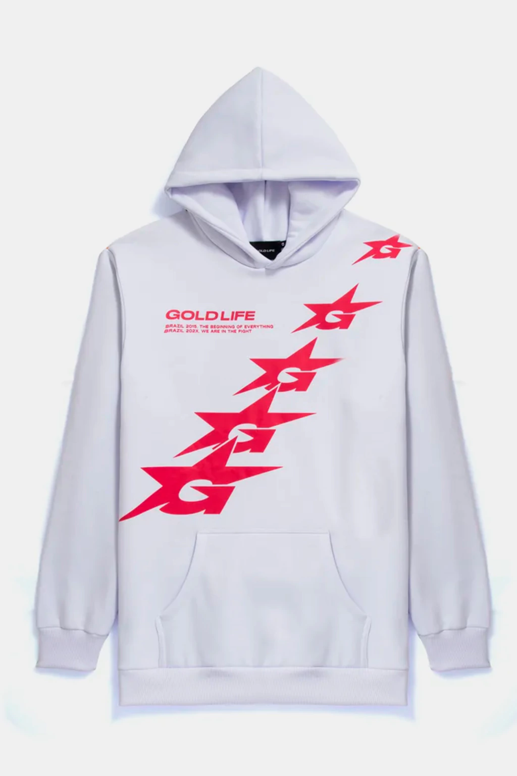 O Moletom Gold Life Five G representa o estilo urbano e contemporâneo da marca Gold Life, unindo design exclusivo e conforto em uma única peça. Produzido em moletom de alta qualidade, oferece toque macio, ótimo caimento e durabilidade. Seu visual se destaca pela estampa nos braços e pelo icônico G da Gold Life aplicado no peito, criando uma identidade visual forte e inconfundível.