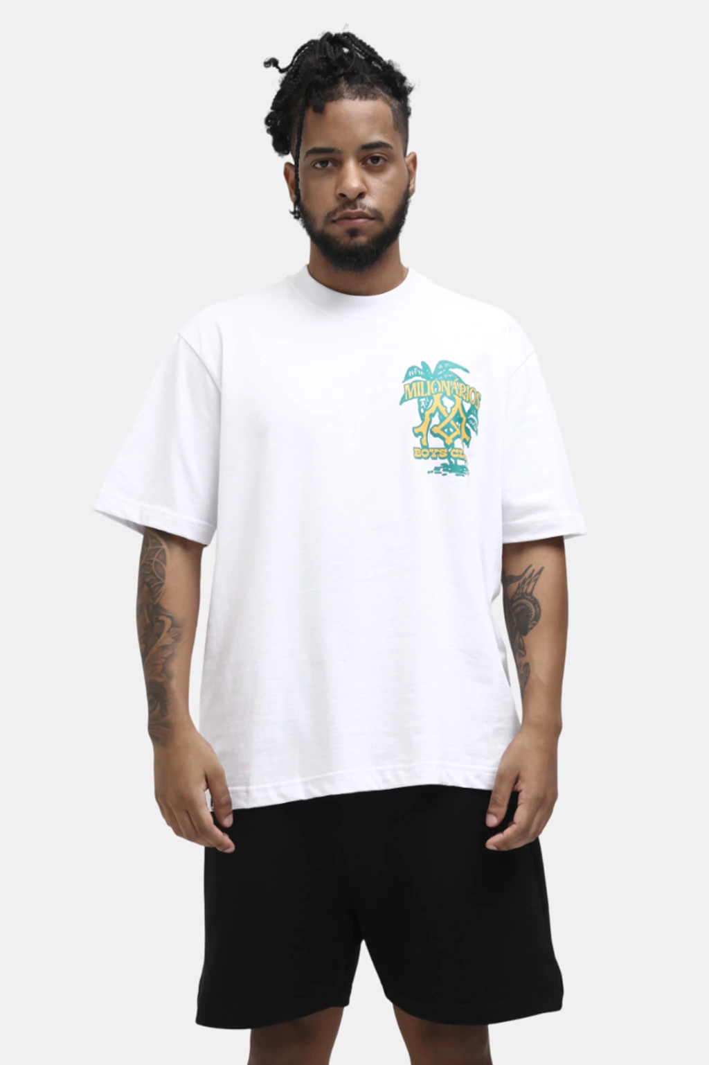Estampa localizada no peito e nas costas, com design exclusivo Vacation Milionários