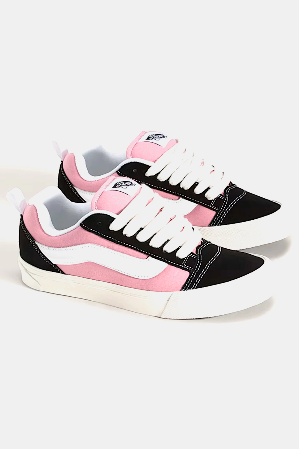 O Tênis Vans Knu Skool Pink conta com cabedal em material resistente, cadarços grossos que proporcionam firmeza, entressola robusta que assegura durabilidade e solado em borracha waffle original Vans, oferecendo tração e aderência.