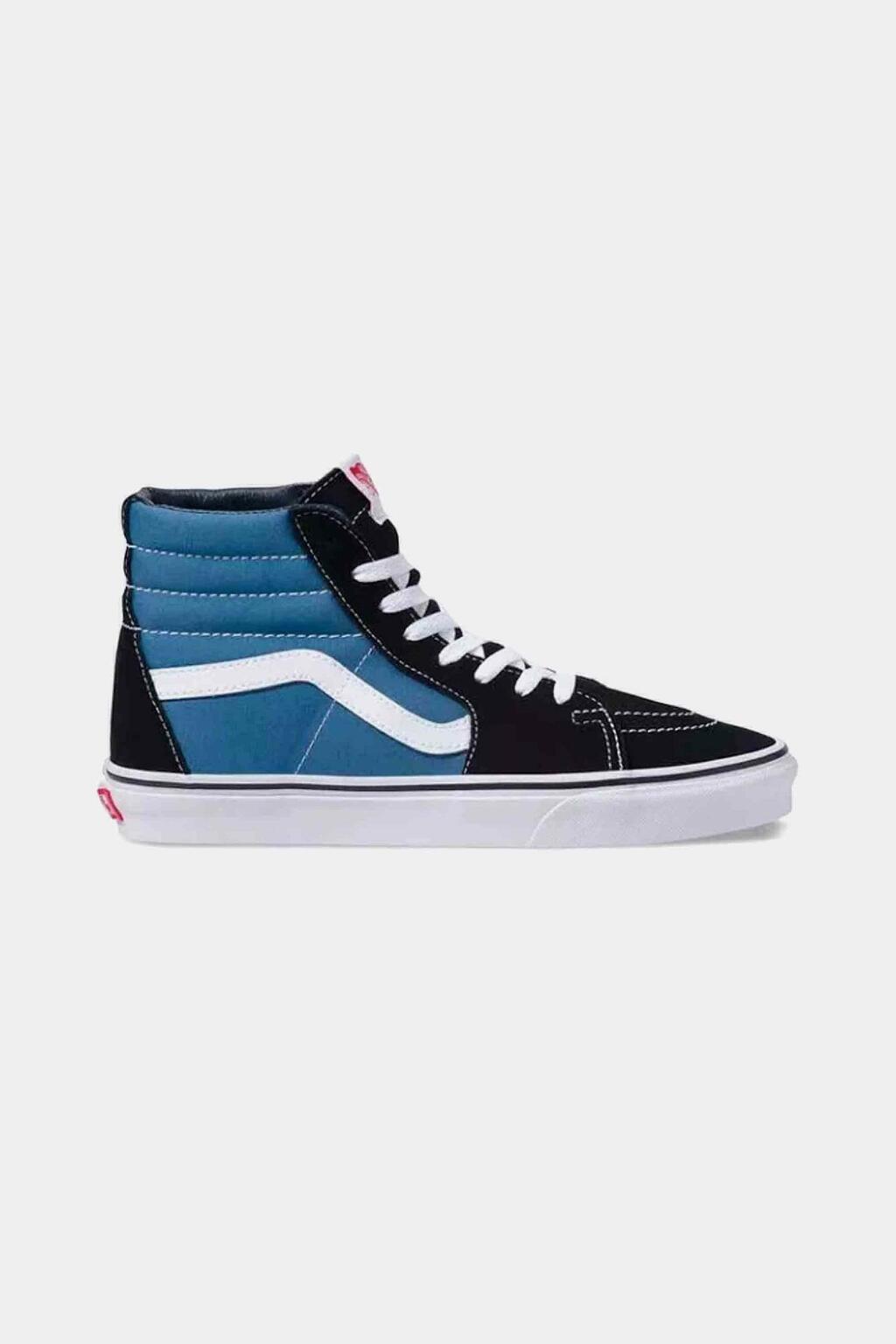 Vans Sk8-Hi lendário lace-up high top inspirado pelo clássico Vans Old Skool, tem uma lona durável e camurça, um tornozelo apoio e acolchoada e Vans assinatura vulcanizada Waffle sola.